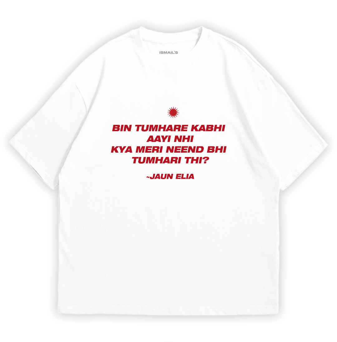Lost in Love, Awake in Memory – Ismail’s exclusive Urdu Poetry T-shirt features a haunting line inspired by Jaun Elia: ‘Bin tumhare kabhi aayi nahi, kya meri neend bhi tumhari thi?’ This wearable verse captures the essence of sleepless nights and unforgotten love. Crafted for those who carry poetry on their skin and pain in their silence. A must-have for fans of Jaun Elia, Urdu literature, and minimalist desi fashion. Elevate your wardrobe with emotion. Available now – limited stock.