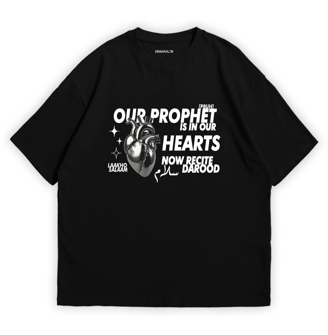 Let your heart speak louder than words with the “My Heart” Halal Graphic T-shirt by Ismail’s – a meaningful blend of love, faith, and fashion. Featuring the powerful reminder “Our Prophet ﷺ is our heart now – Recite Darood,” this T-shirt is more than just clothing; it’s a spiritual statement.